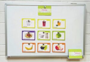Unser Mittagessen wird täglich von unserer Küchenfee frisch gekocht und ist abwechslungsreich und kindgerecht. Damit die Kinder sehen können, was es zu essen gibt, hängen wir jeden Tag Bildkarten mit dem Menü aus. So können sie sich orientieren, ins Gespräch kommen und mit Freude am gemeinsamen Essen teilnehmen.