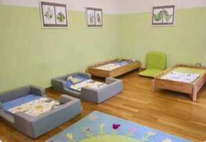 In unserem Schlafraum finden die U3-Kinder einen ruhigen und geborgenen Ort zum ausruhen. Wir begleiten sie liebevoll in den Mittagsschlaf und schaffen eine angenehme Atmosphäre mit gedämpften Licht, lieber Musik oder kleinen Ritualen. Jedes Kind hat einen festen Schlafplatz, der Sicherheit gibt. Wir achten auf die individuellen Bedürfnisse und ermöglichen so erholsame Ruhepausen.